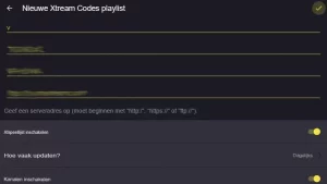 2- in een vak Playlist Url (.M3U of .M3u8): Plak de link (2- in een vak Playlist Url (.M3U of .M3u8): Plak de link (m3u link) van het WATCH4k-IPTV abonnement of de gratis proefversie, die u per e-mail wordt toegestuurd wanneer u een abonnement of proefversie aanvraagt. (kopiëren plakken)